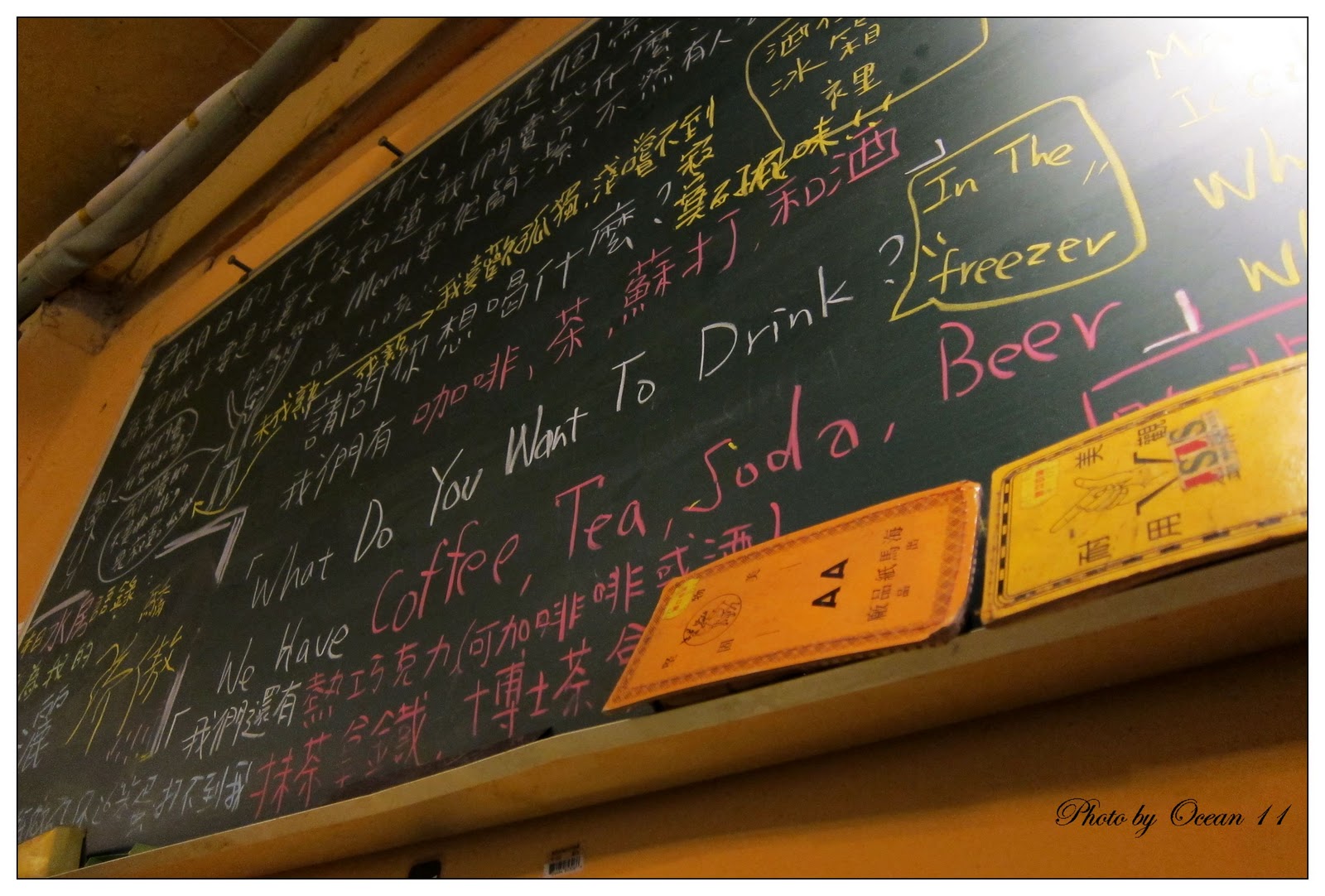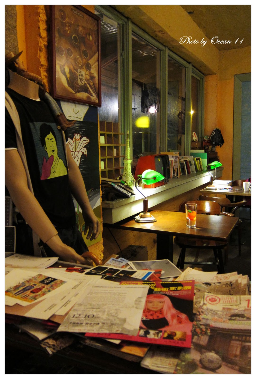 同一個禮拜我又找了一個晚上到這家咖啡館,總覺得它跟我以前去過的咖啡館不一樣。走進去之後可以藉由擺設感覺到主人的個性、喜好、經歷等。雖然不認識,猜得也不盡然準確,但就是陌生之中又不全然有距離感。而在他的空間裡,藉由每一個不同的位子,都會有不同的感覺。或者,可以找一個符合想像中或記憶中屬於自己的一個落腳處。